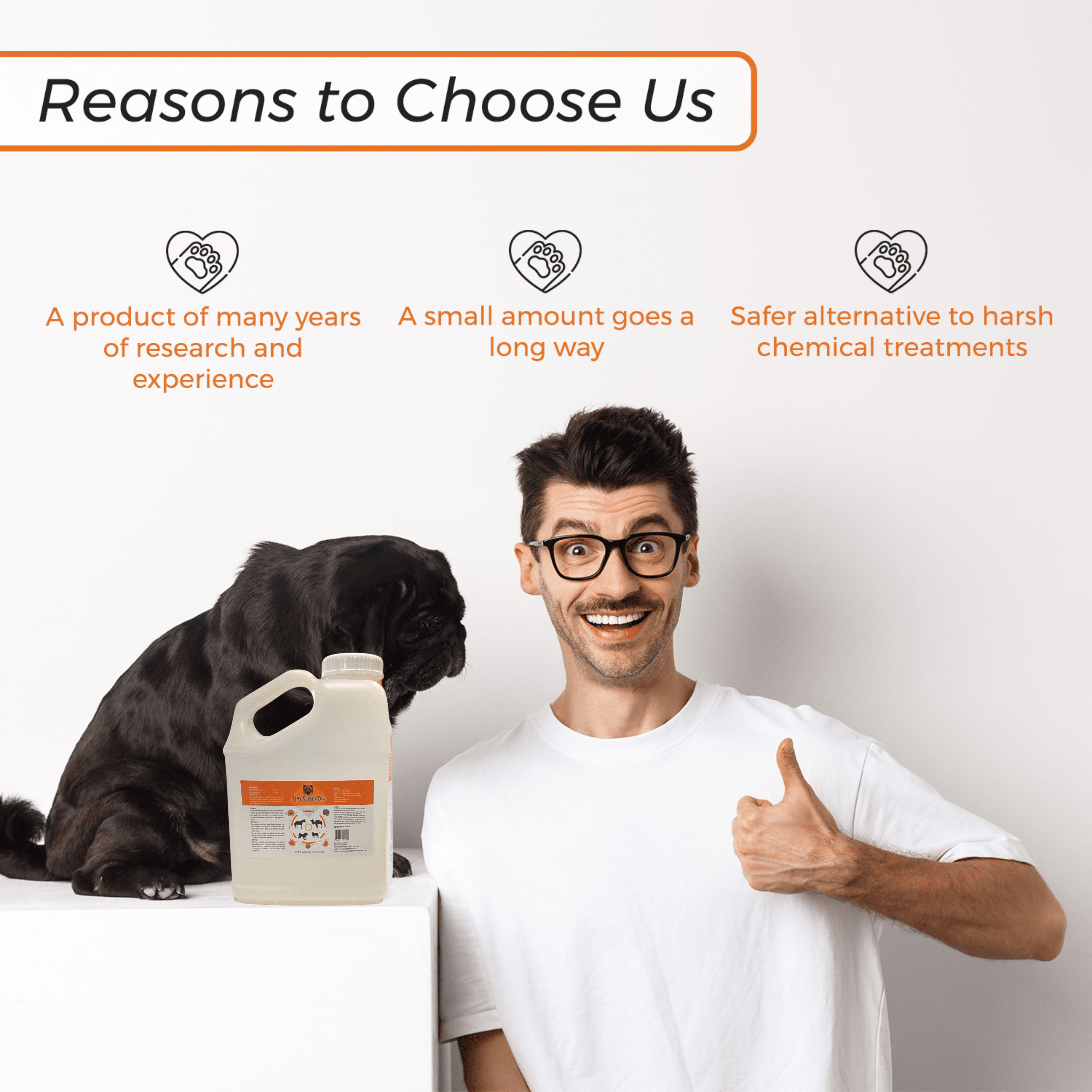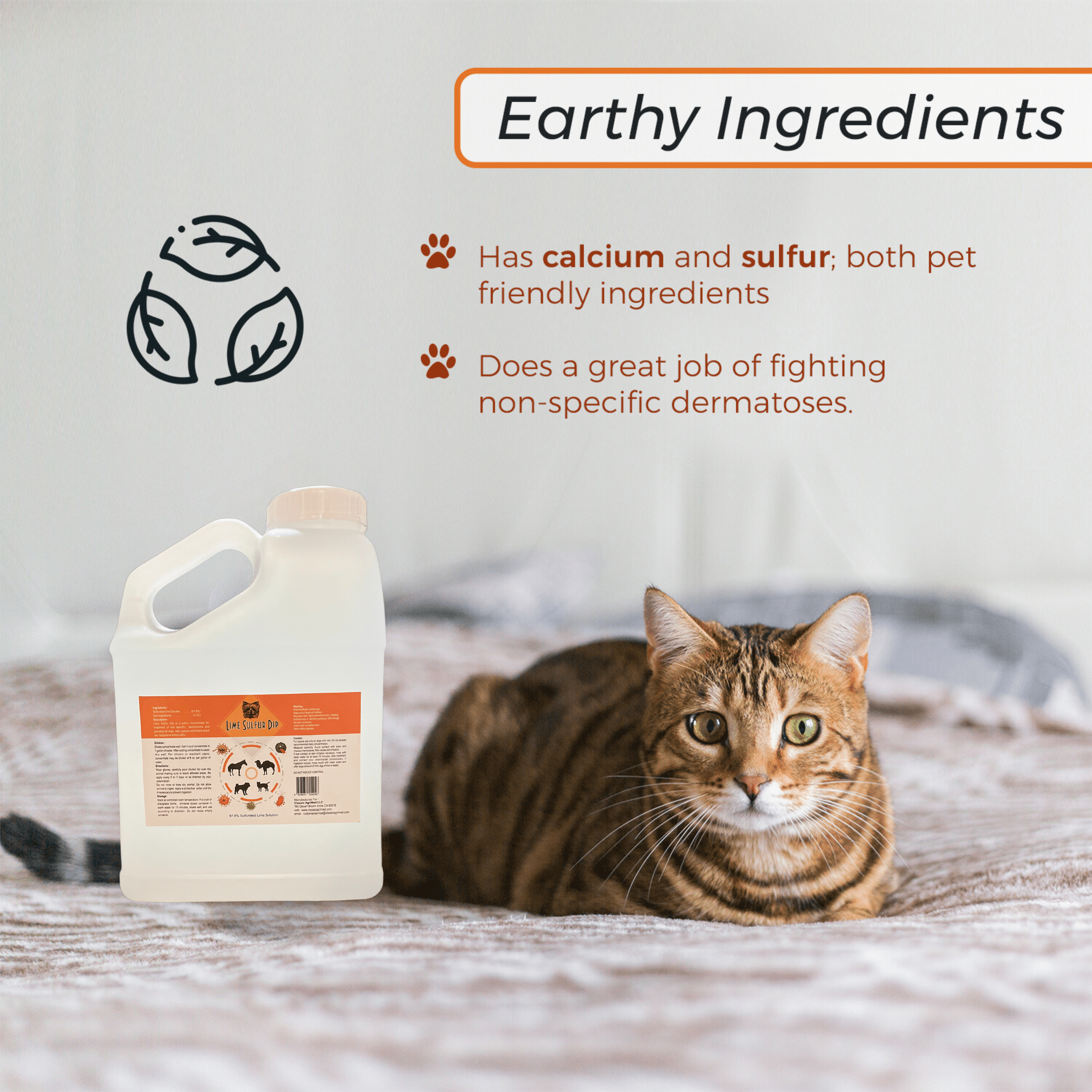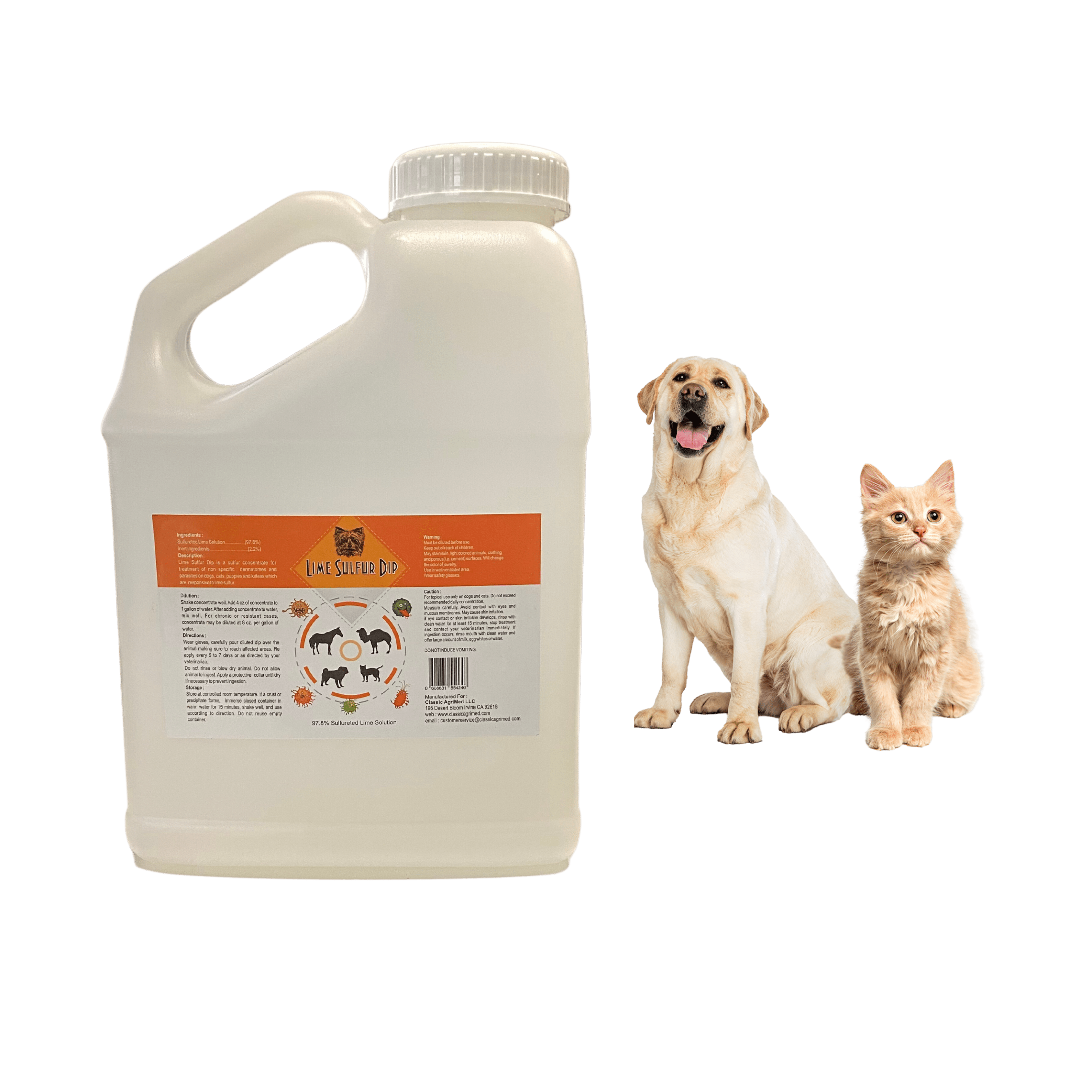 Our lime sulfur dip channels the healing powers of earthy ingredients to rid your pets of itchy skin problems.